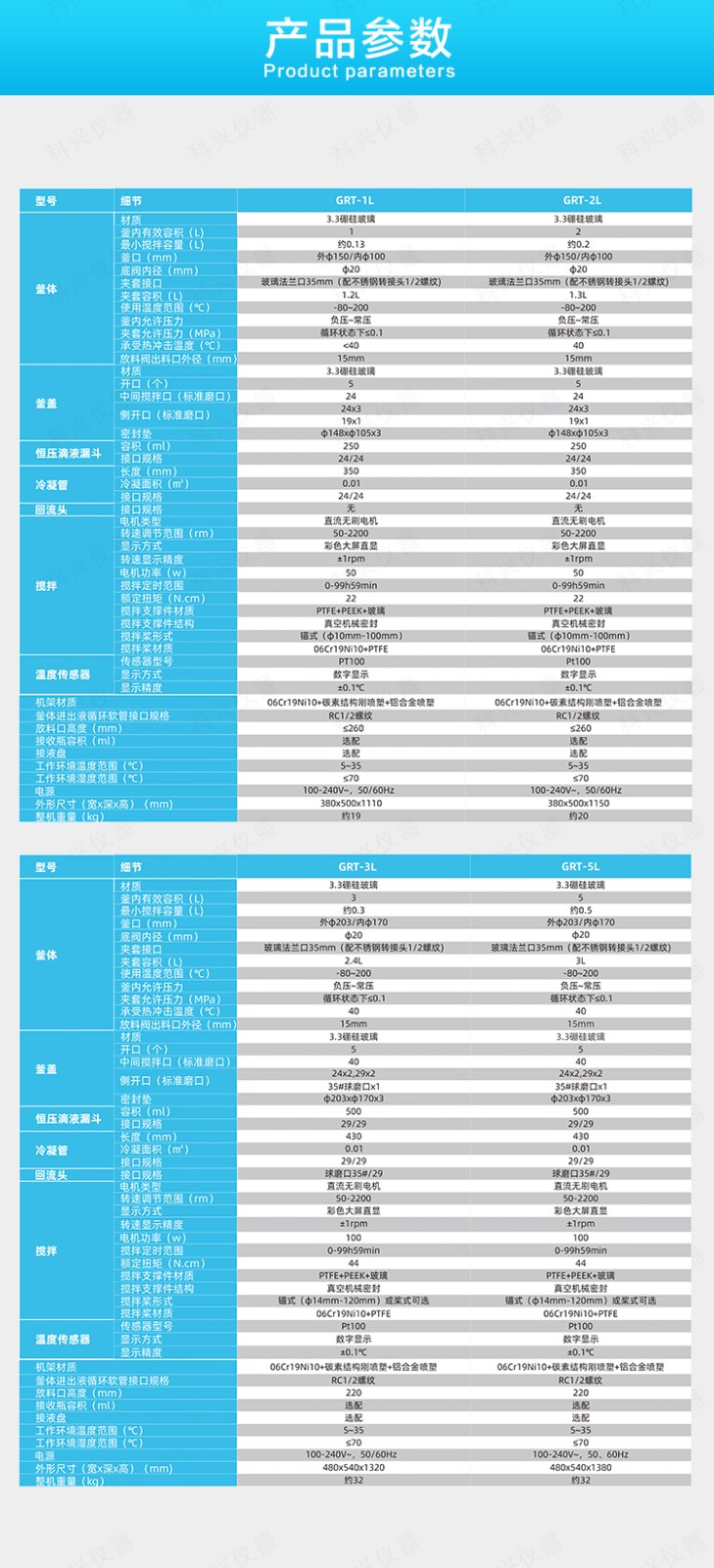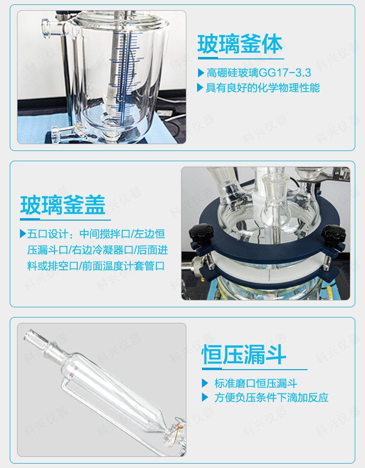 | 釜體 | 材質 | 3.3硼硅玻璃 | 3.3硼硅玻璃 | 3.3硼硅玻璃 | 3.3硼硅玻璃 |