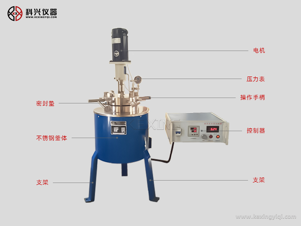 KLF系列實驗室磁力攪拌反應釜為釜蓋不可自動或手動升降,主要由釜體、釜蓋、磁力攪拌器、加熱器、閥門、加料口、內冷卻盤管、安全爆破裝置、壓力表、控制儀及升降裝置等部件組